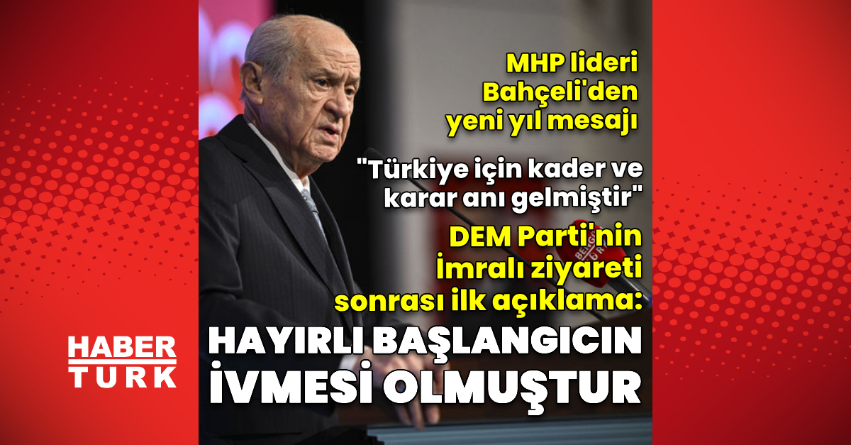 MHP Genel Başkanı Devlet Bahçeli, yeni yıl mesajında, DEM Parti’nin İmralı ziyaretine ilişkin, “İmralı ile DEM Parti temsilcileri arasında 28 Aralık 2024 tarihinde gerçekleştirilen görüşme ve bu görüşmenin genel hatlarıyla medyaya yansıyan bazı bölümleri demokrasiyi, Türk-Kürt kardeşliğine bağlanan umutları nispeten takviye etmekle kalmamış hayırlı bir başlangıcın ivmesi olmuştur” dedi.